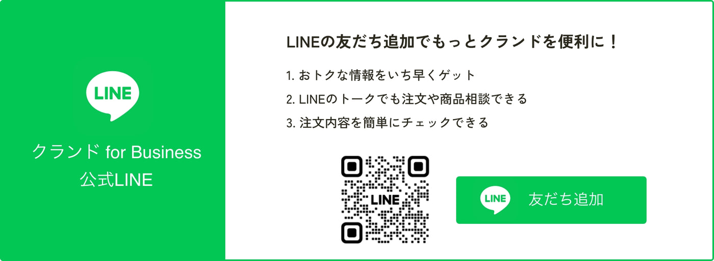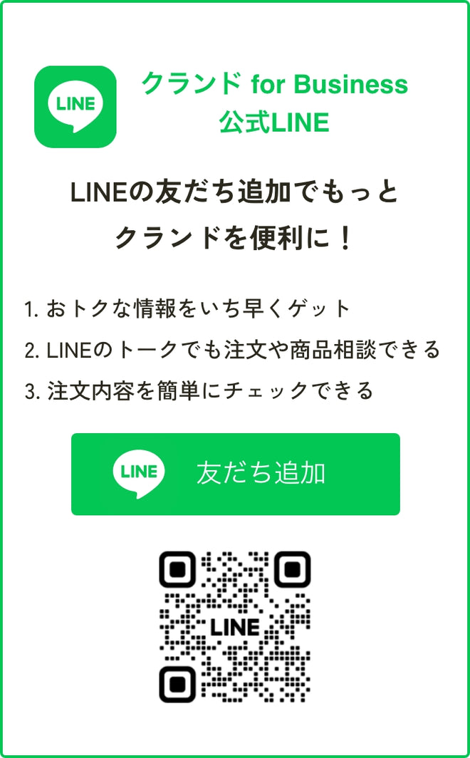 クランド for Businessでのお買い物金額に応じて、特典が受けられる会員プログラムです。ランクが上がるごとに、単品商品がお得に購入できる「会員価格」の割引率がアップします。商品の割引価格で購入できる特典を受け取るには、LINEのアカウント連携が必要です。